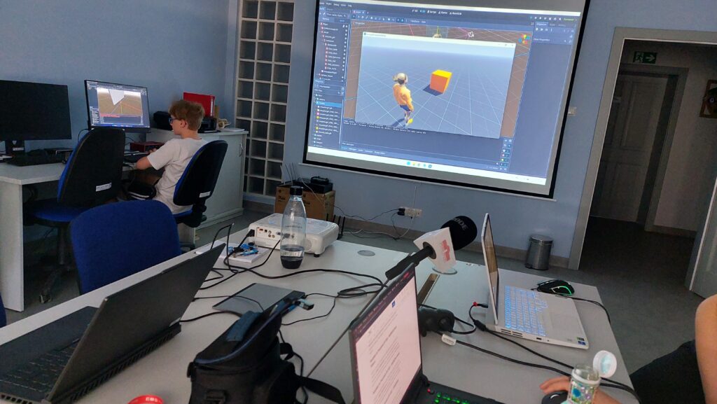 Celem zajęć było nie tylko wprowadzenie dzieci i młodzieży w świat podstaw programowania, ale też budowanie umiejętności logicznego i kreatywnego myślenia. Do nauki wykorzystywaliśmy profesjonalne narzędzia, takie jak silnik Godot Engine, który jest używany przez twórców gier na całym świecie. Dzięki niemu uczestnicy mogli tworzyć własne projekty – od prostych poziomów po w pełni działające prototypy gier.