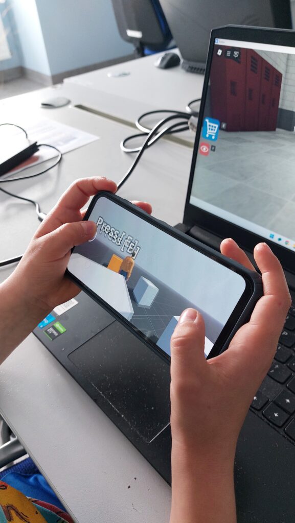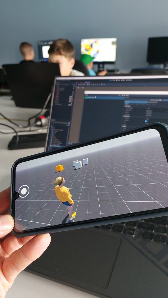 W trakcie zajęć uczniowie poznali zasady projektowania poziomów, tworzenia interakcji z obiektami i budowania podstawowej mechaniki rozgrywki. Pracowaliśmy nad systemem sterowania postacią, stanami gracza (state machine), interakcją z otoczeniem oraz tworzeniem postaci przy pomocy narzędzi takich jak Mixamo czy Blender. Uczestnicy uczyli się eksportowania swoich gier na urządzenia mobilne z wykorzystaniem Android Studio, Java SDK oraz konfiguracji środowiska dla Androida.