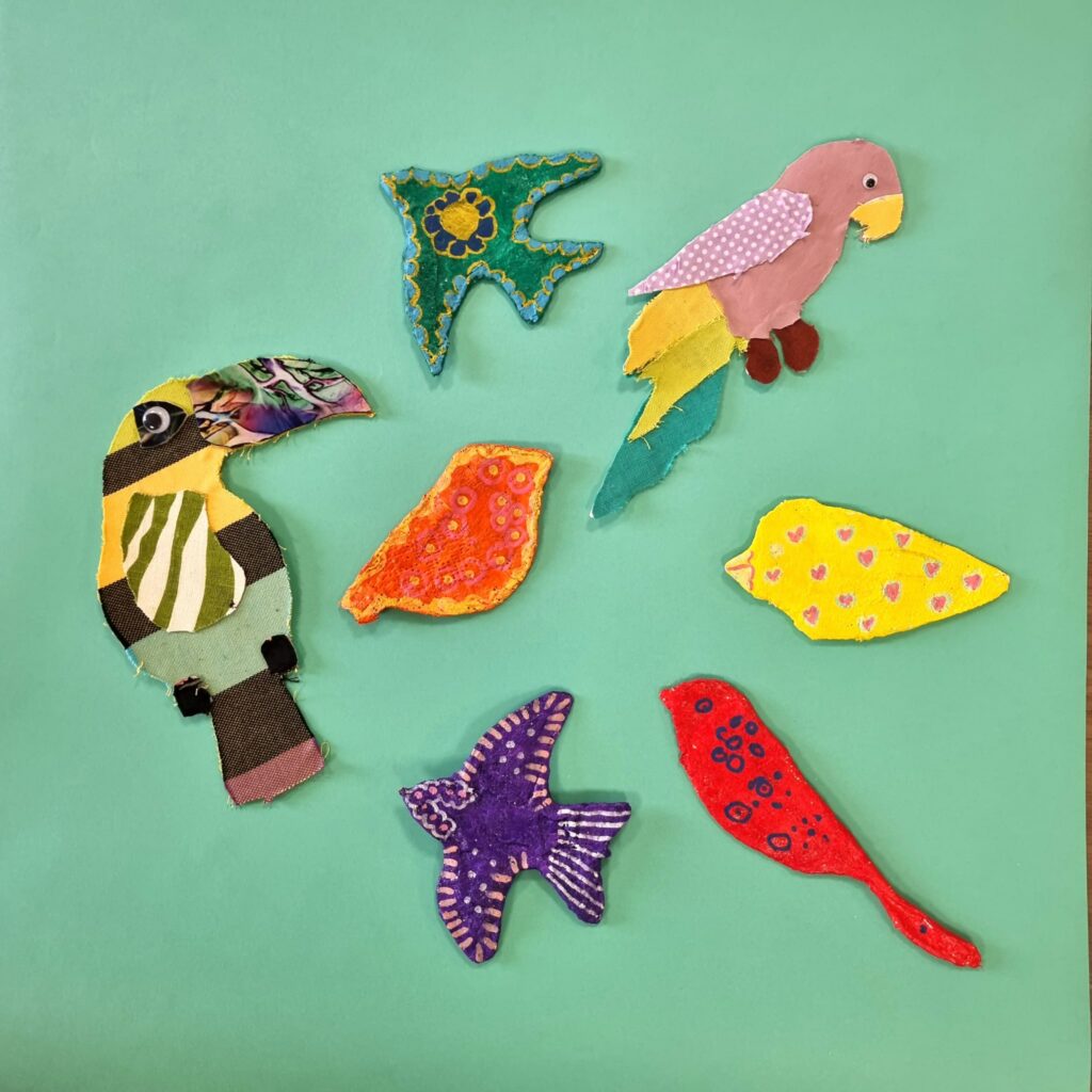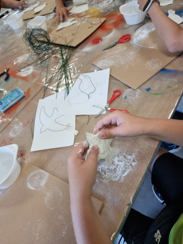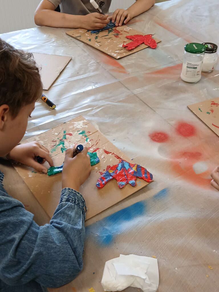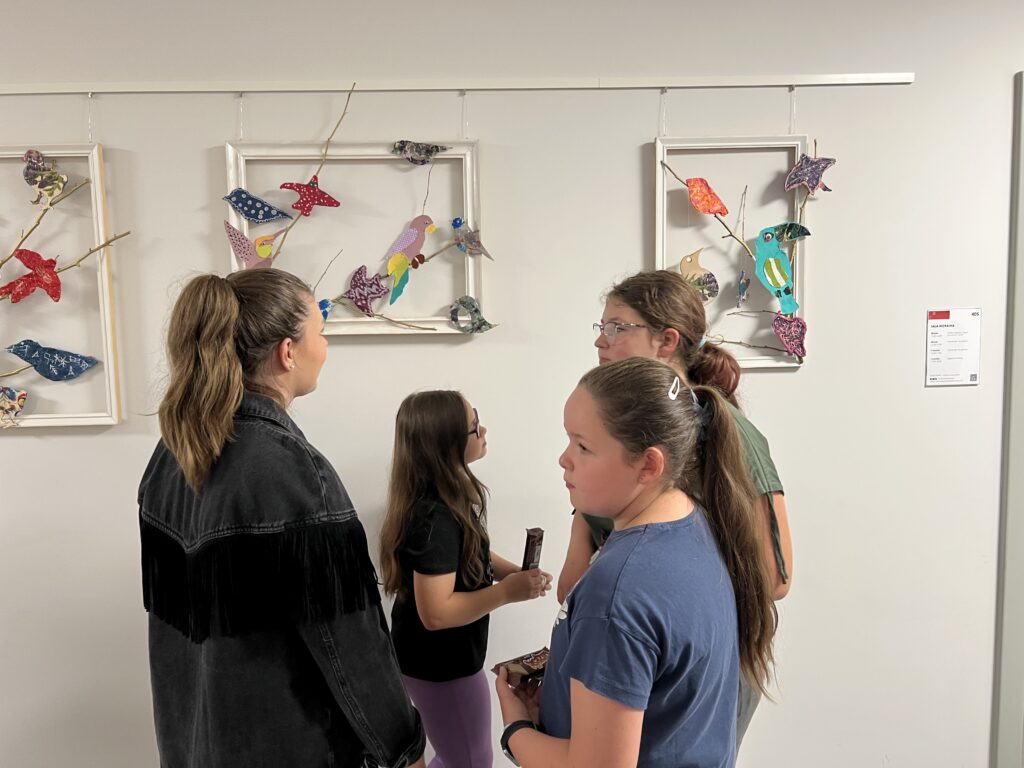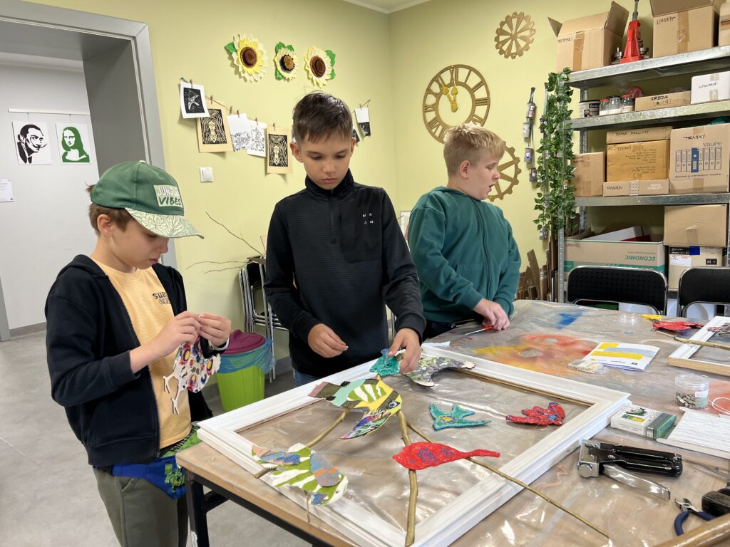 Uczestnicy nie tylko tworzyli – również wspólnie zaplanowali i zorganizowali wystawę, która stanowi podsumowanie tygodnia pracy. „Ptasi Raj” można oglądać na drugim piętrze w Małej Galerii Centrum Kultury – to przestrzeń, w której każdy detal jest przemyślany, a całość opowiada historię pełną koloru, tekstury i wyobraźni naszych młodych artystów.