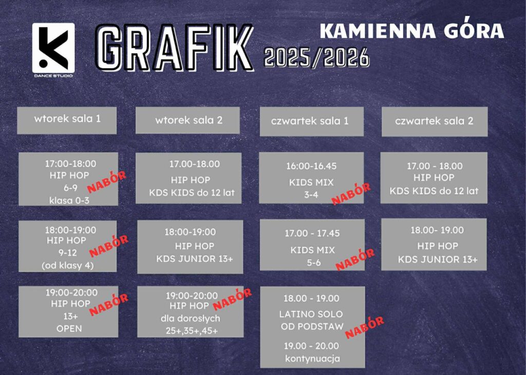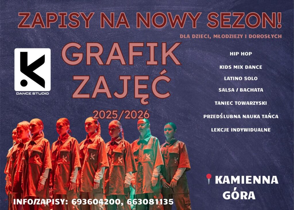 Startujemy od 9 WRZEŚNIA 2025 z nowym SEZONEM TANECZNYM w KDance Studio Kamienna Góra w Centrum Kultury w Kamiennej Górze.