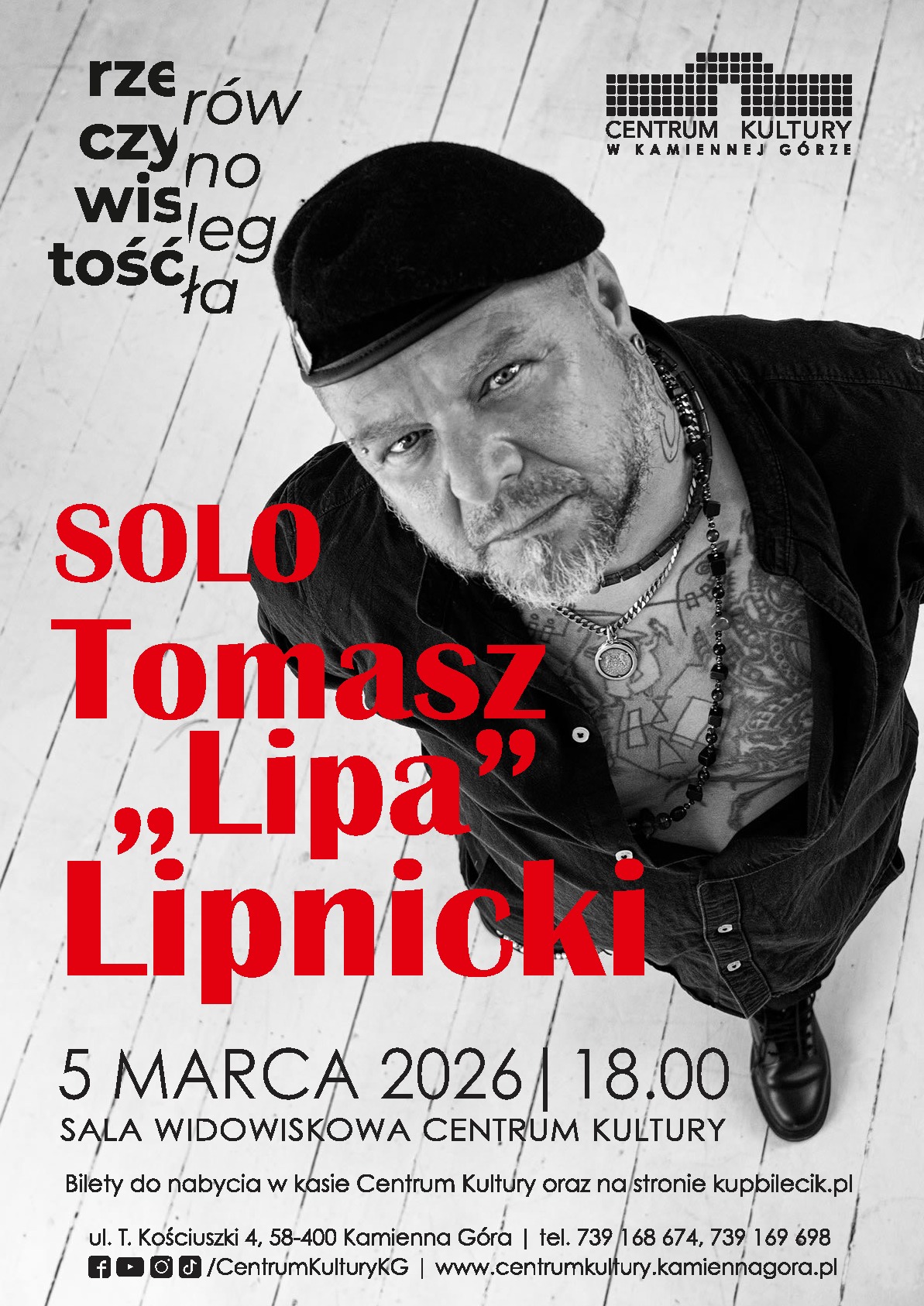 Będzie gitara, będą piosenki, będą historie z życia i drogi artystycznej Lipy. Część znanych utworów zabrzmi w zupełnie nowych, intymnych wersjach, a rozmowa z publicznością stanie się naturalną częścią tego wydarzenia.